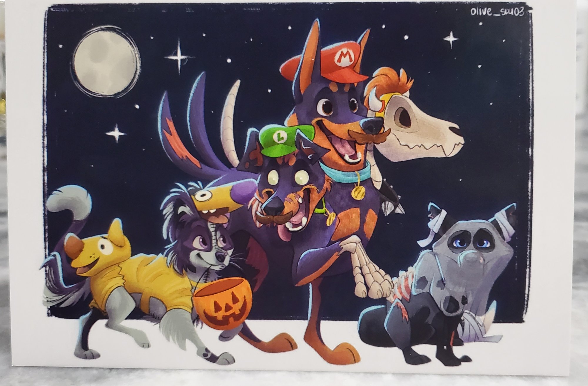 This has to be one of my top favorite commissions I've gotten so far. There's so much that I love about it I don't even know where to start! They're all absolutely adorable! Thank you so much! The mustaches are adorable :') I let the artist pick the costume for Anastasios and I love what she chose! Then Portmanteau is my newest character I got from @snake_wing and I had to have them dressed as Catdog, no doubt about it! And finally, I had Espiridion, my character from @abzart1 reimagined as a silver fox! He can only come out on Halloween, so here we are! š Would you give them some candy? š¬š«