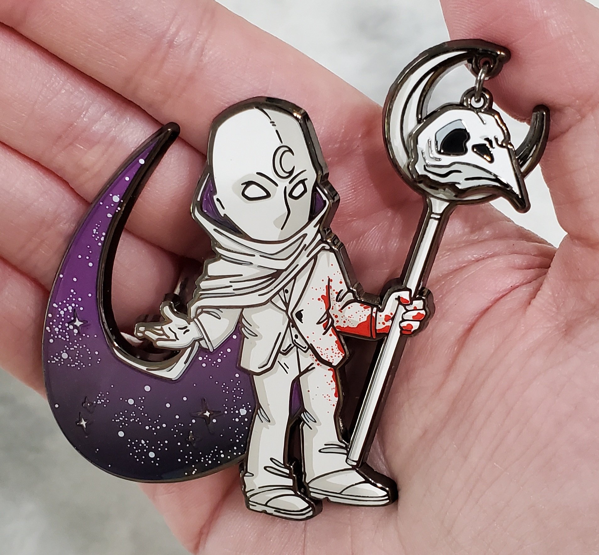 - Galaxy Mr Knight has pearlescent colors without a swirl, with two colors on a gradient, as well as a glow in the dark effect for the stars, and Khonshu is on a little dangle chain